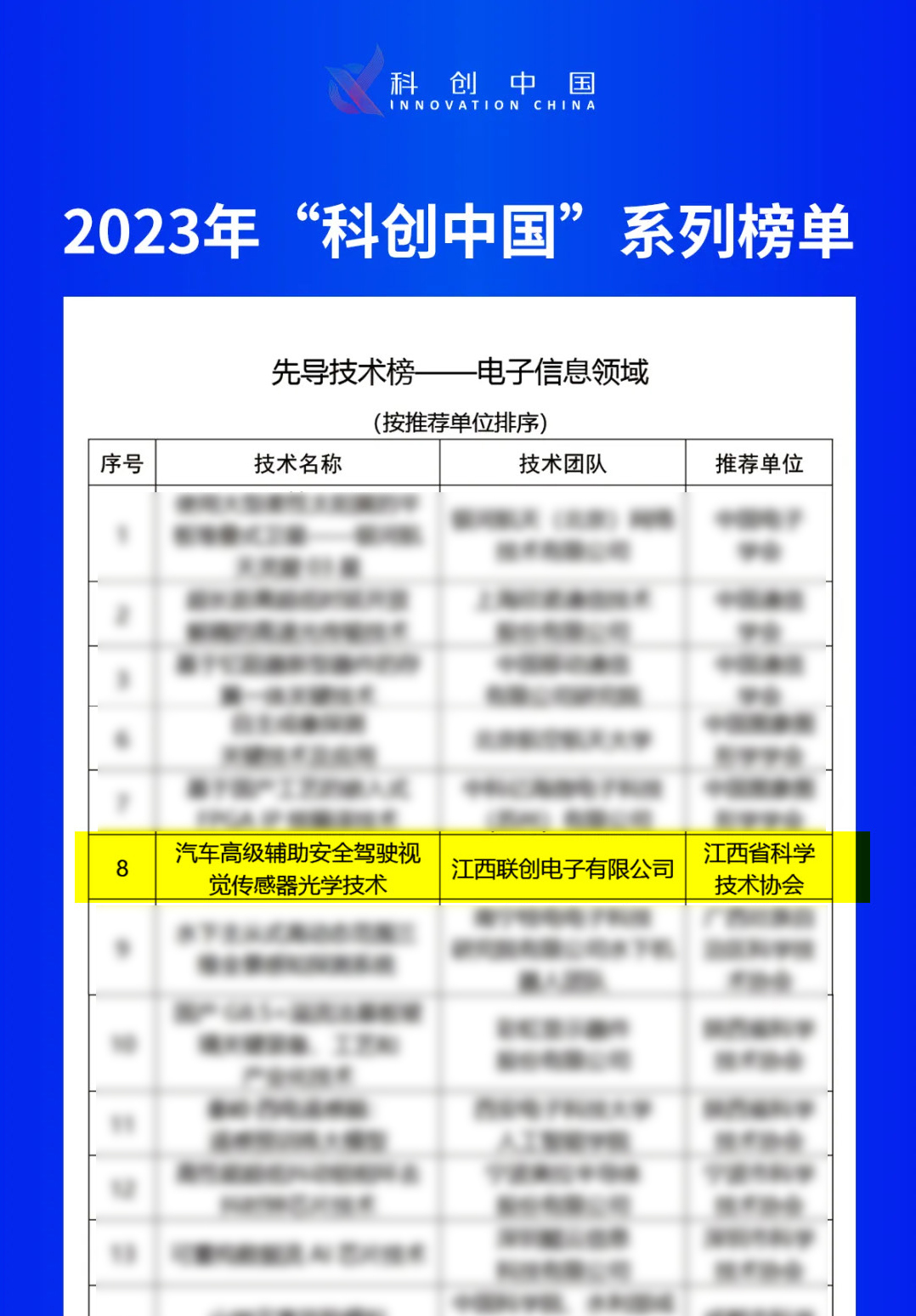 【概要描述】近日,中国科学技术协会公布了2023年度“科创中国”系列榜单遴选结果,1x体育官网,1x体育(中国)的“汽车高级辅助安全驾驶视觉传感器光学技术”成功入选电子信息领域先导技术榜。